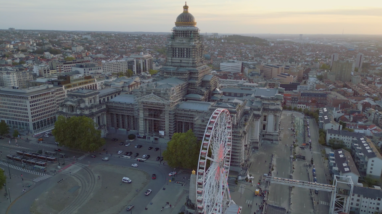 Les rampes et terrasses périphériques du Palais de Justice forment un ensemble impressionnant, près de 13 000 m², sur environ 600 mètres, entre la rue des Minimes, la rue Wynants et la rue aux Laines. Ce n’est pas un simple bord de monument, c’est un morceau de ville, un espace public possible, une couture potentielle entre la haute et la basse ville.